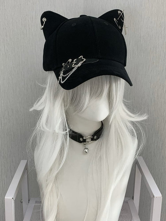 Ear Pin Decorated Kitty Cap Star Blue/Black/Yellow Cross Charm Buckle