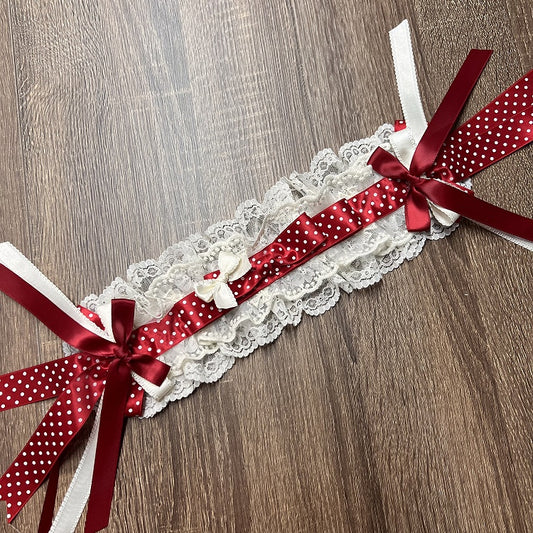 Details Decorated Hairband Ruffled Black/White Bowknot Studs