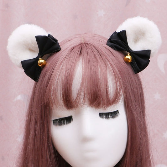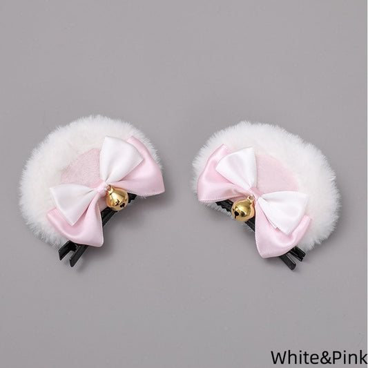 Bear and Bow Clips Bell Cute Ear Plush Colors Lolita Hair 6 Decorated