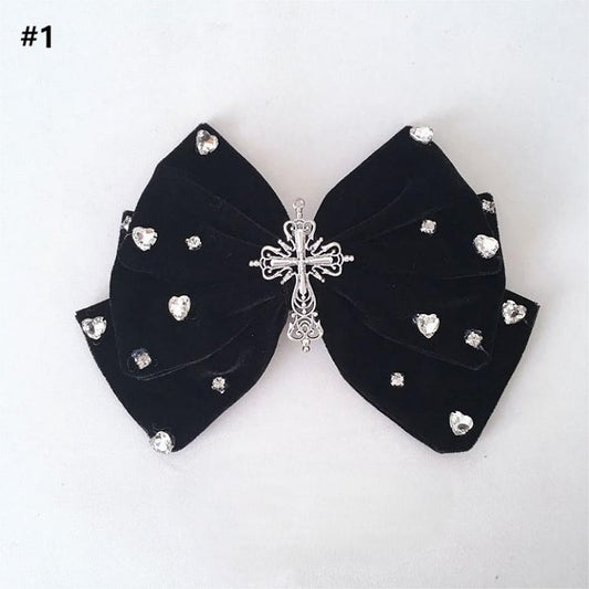 Heart Hairclip Option Rhinestone Decorated Cross Black 2
