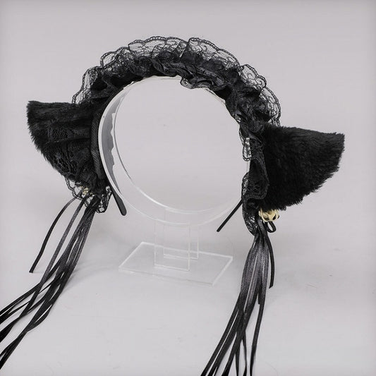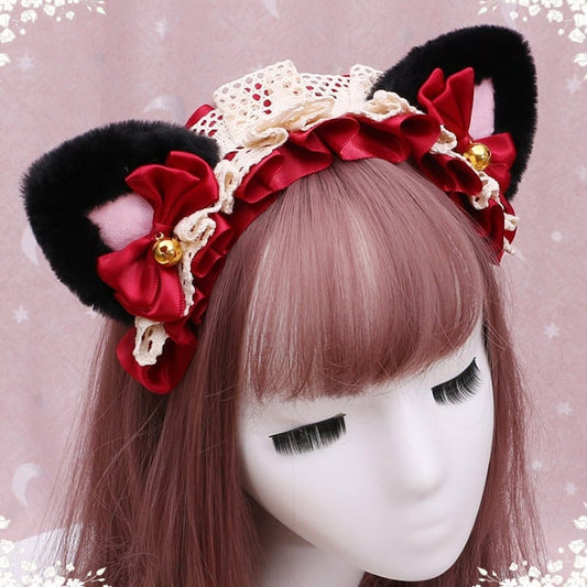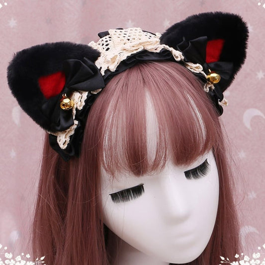 Decorated Lace Lolita Pink with KC Kitty Colors Playful 4 Plush Bow Bell Ears Black