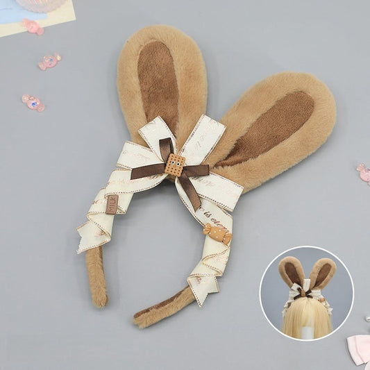 Cookie Sweet KC Black/Brown Plush and Decorated Ear Bunny Lolita Bow