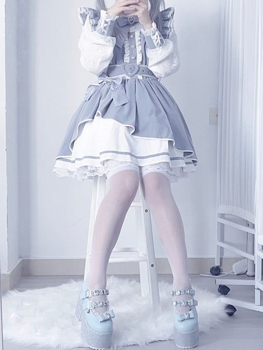 Lolita Heart-shaped Princess Jumper Pink Skirt Layered White Hanayome Decoration and Dress Bows