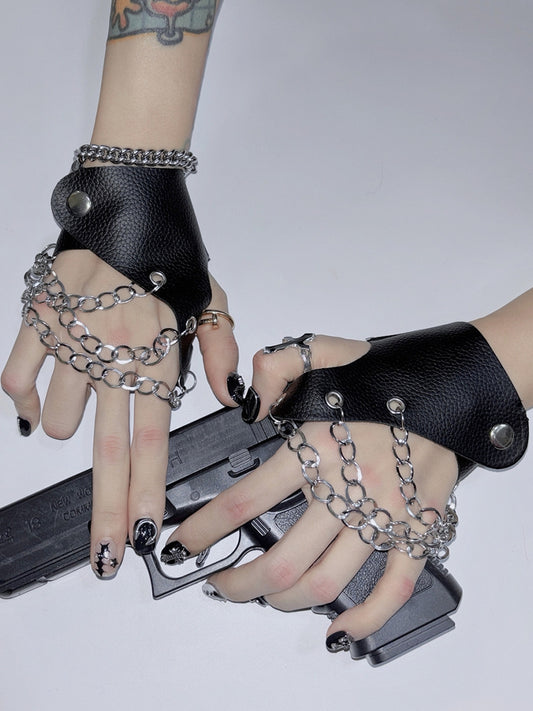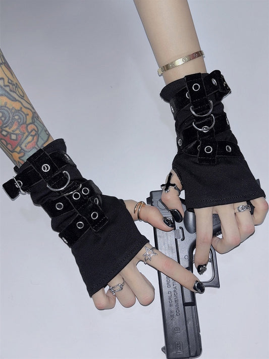 Gloves Decorated Buckle Black Y2K