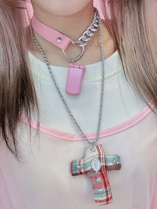 Y2K BlueRed Cross Fashion Decorated Gyaru Necklace Star
