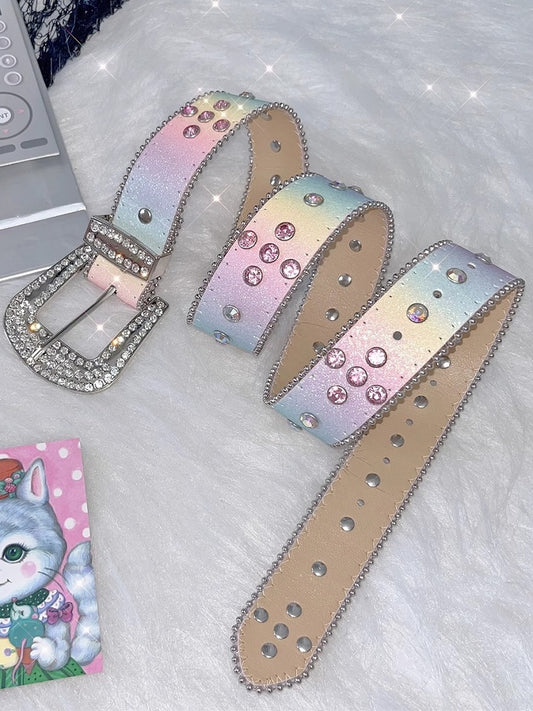 Decorated Colorful/White Waist Belt Rhinestone
