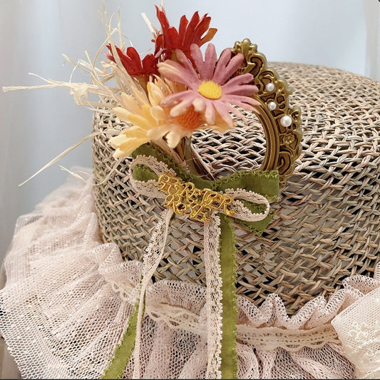 Hat Lolita Flowers Straw Strawberry and Decorated Cottagecore