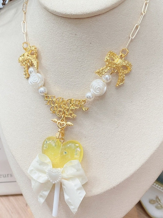 Necklace Bowknot Decorated Pendant Yellow/Pink/Purple Lollipop Beaded And