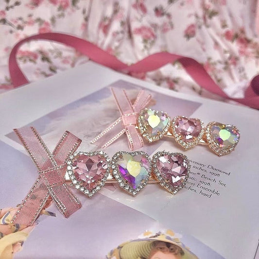 Hairclip Bow Heart Pink Rhinestone Decorated