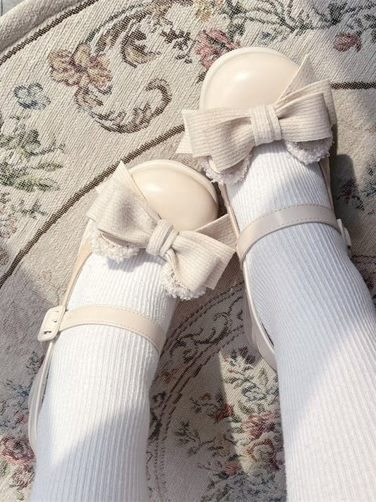 Mary Hemline Bow Beige Accent - for Low-heel/Mid-heel Lolita Bear Jane Sweet Ear Convertible Decorative Shoes