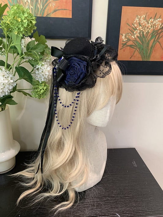 Red/Blue/Purple Lolita Mini Hat Decorated Black Rose Trimmed Lace Gothic