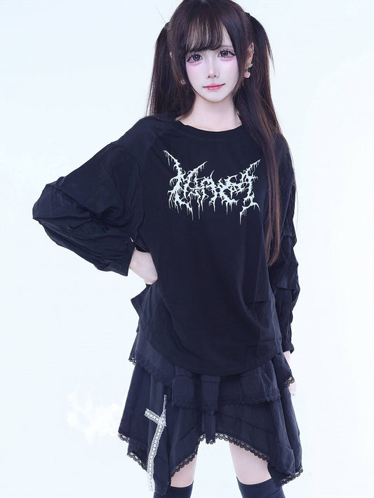 Lace Asymmetric Black Jirai Cross-Decorated Skirt Kei