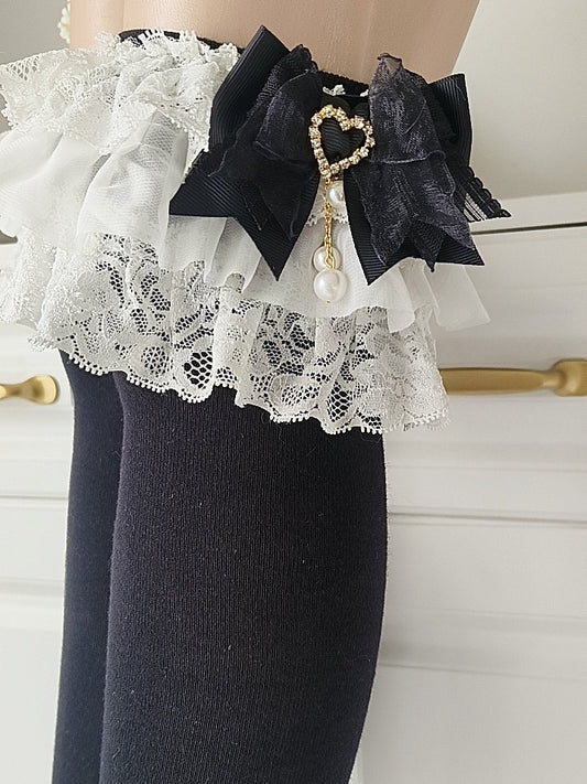 Decoration Socks Velvet Lace with Black/White Calf Bowknot