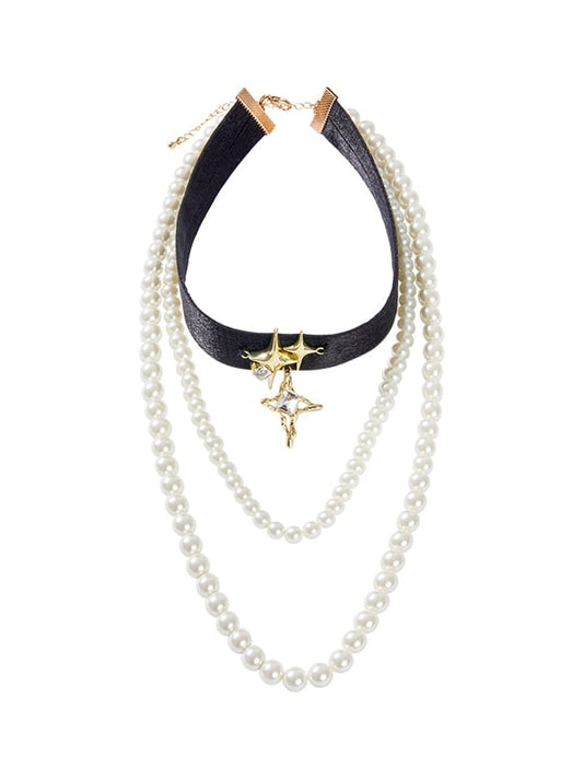 Black Choker with White Artificial Pearl Necklace