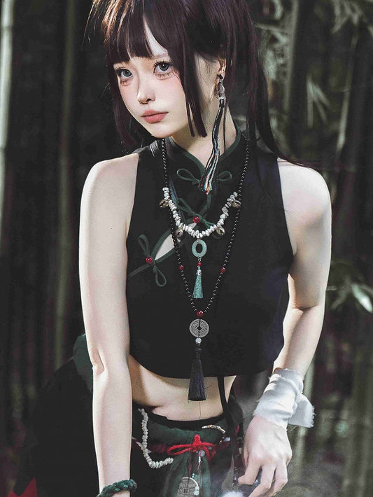 Gothic Necklace Black Top Han Lolita Skirt Bonnet Long Apron Horse-face - Set +