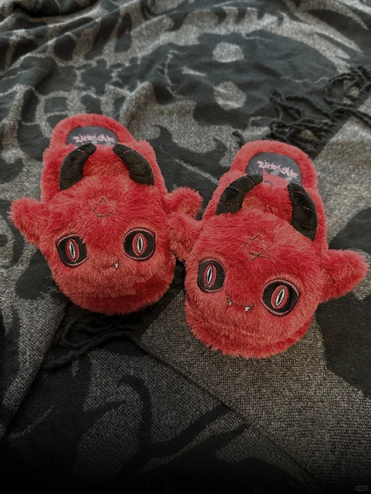 Black and White Grim Reaper Gothic Winter Plush Slippers