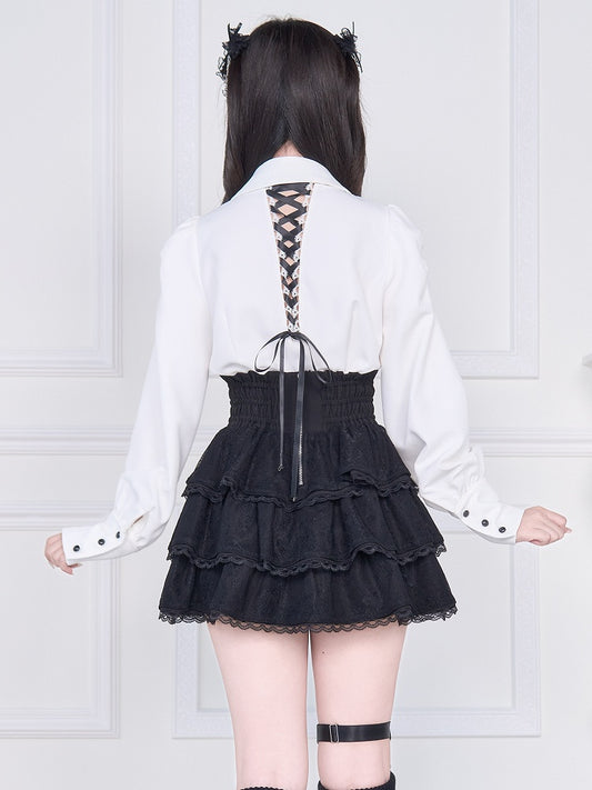 Ruffled Collar Gothic and Blouse Lolita Back with Black Lace-up