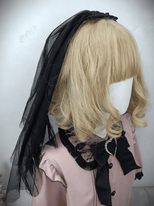 Gothic Rose Detachable With Bow Veil Wine Black Hairclip Red