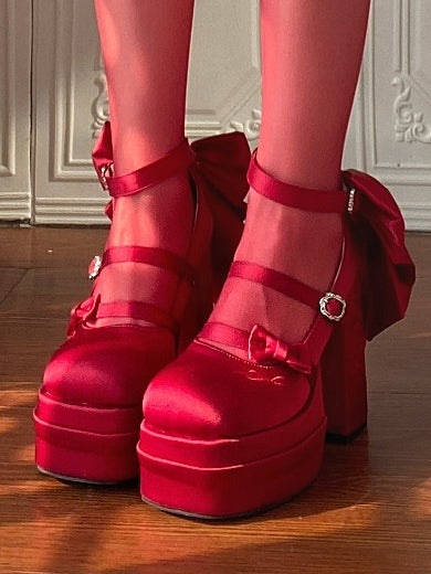 Janes Red Bowknot Classic Mary Lolita High Heels Platform Elegant