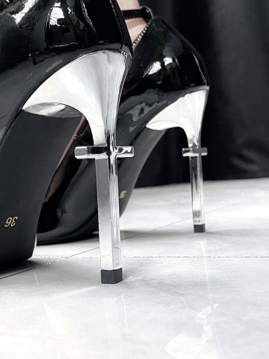High Black Design Heel Gothic Heels Pointed Cross Toe
