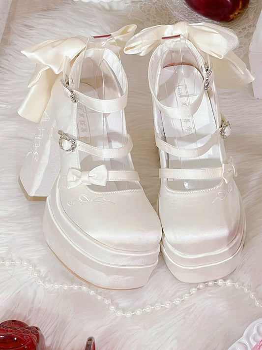 Mary Lolita Platform Bowknot Elegant Janes High Heels White Classic