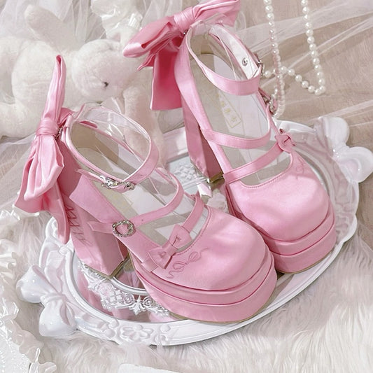 Classic Heels Mary Lolita High Bowknot Pink Platform Elegant Janes