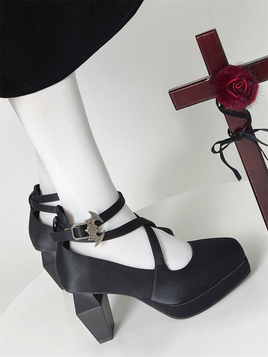 Toe Strap Goth High Elegant Square Teresa's Silk Prayer Heels
