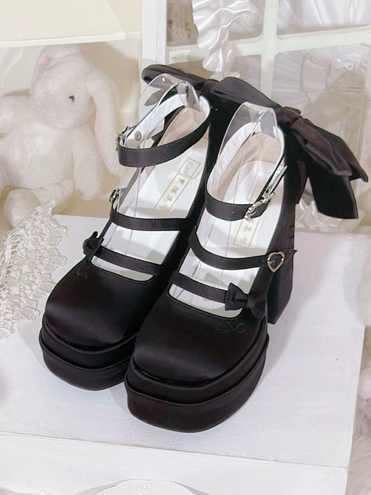 Classic Platform Black Bowknot Janes Lolita Elegant High Mary Heels