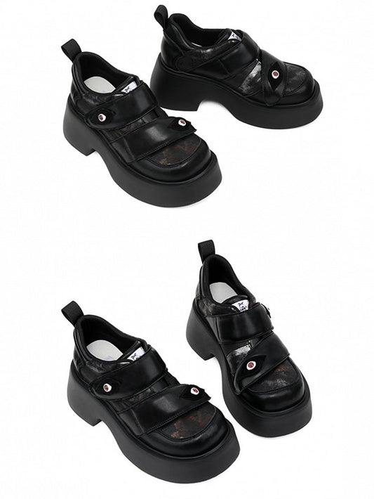 Strap Punk Eye Heels Platforms Closures Chunky - Velcro Black Demonic Patch with