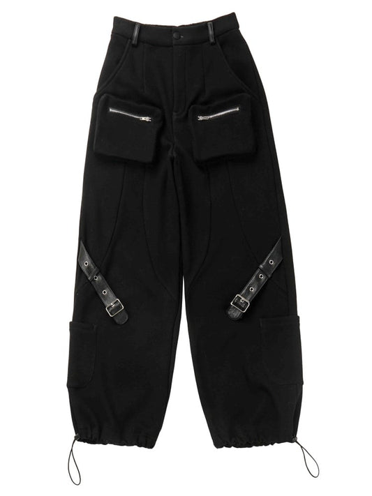 Gothic Black Buckles Cargo Pants with Drawstring Cuff