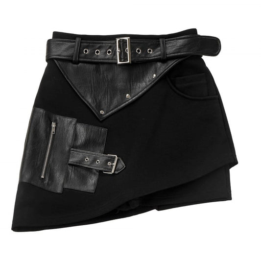 Black Gothic Asymmetrical Skirt with Waist Belt