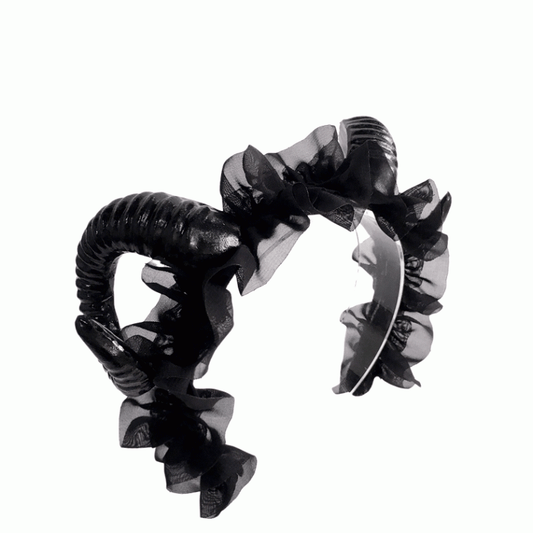 Cross Studs and Choker Pendant Gothic Black/White with Lace Ruffled