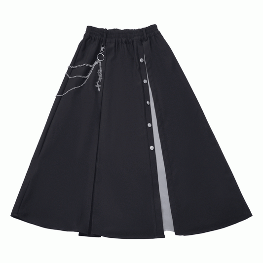 with Gothic Long | White Cross Skirt Elastic Chiffon Waist Black Chain Slit