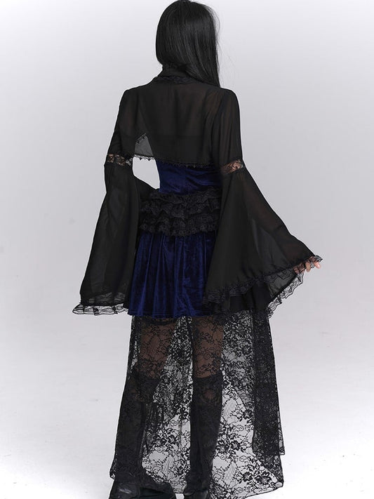 Black Shrug Embroidery Lace Crop Floral with Sleeves Bell Gothic Halloween