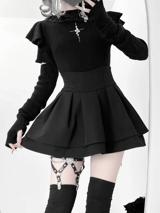 All Sleeves Detachable Embroidery Short Gothic Top Hallow Spider + Black Overlay Lolita Out Collar Web Skirt
