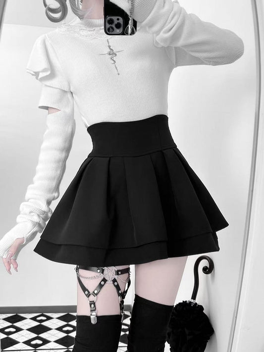 Tiered Lace Gothic Flat Skirt Collar with + Set: Two-Piece White and Black Bell Pointed Trim Sleeves Top