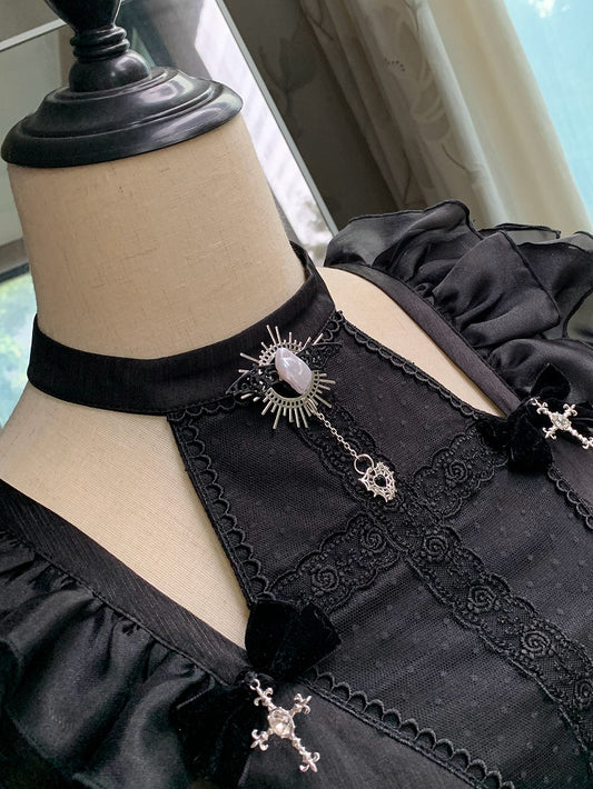 Cross Decorated Choker Gothic Pendant Rosette Black