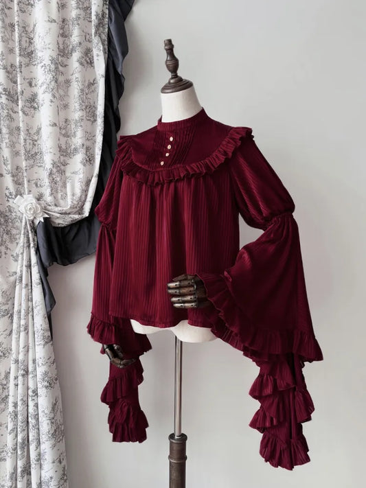 Sleeves Flounce Striped Bell Gothic Blouse Fabric Red