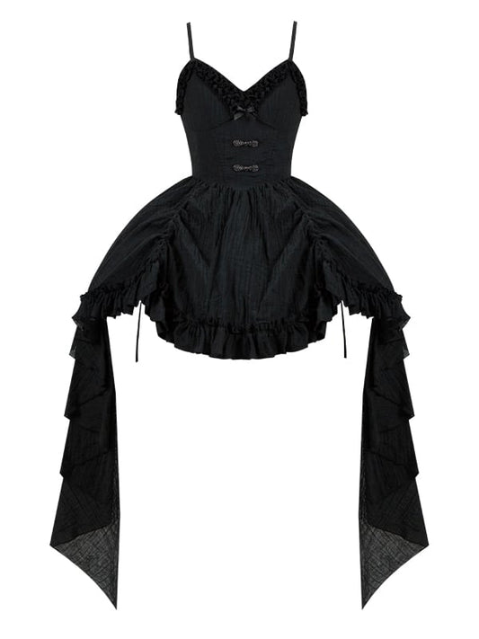 Buckle Feather Dress Panel Straps Shoulder Lace Skirt Gothic Black Lolita