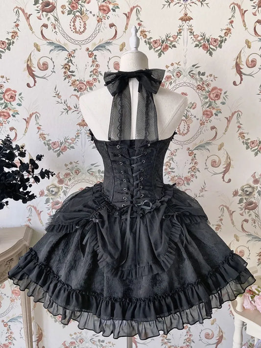 Cross Belle Black Halter Neck Corset Dress Gothic Lolita JSK