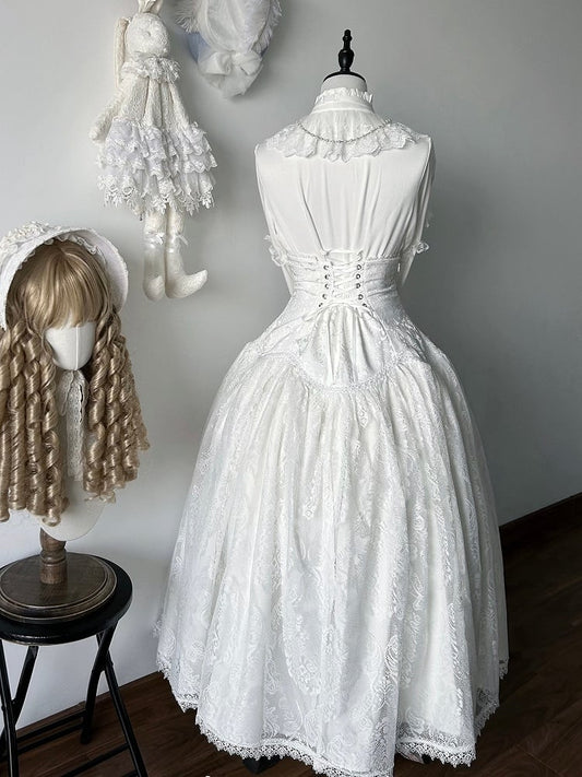 Corset Lace-ups Waist Gothic Skirt Design Birdcage White Dress and Lolita Red