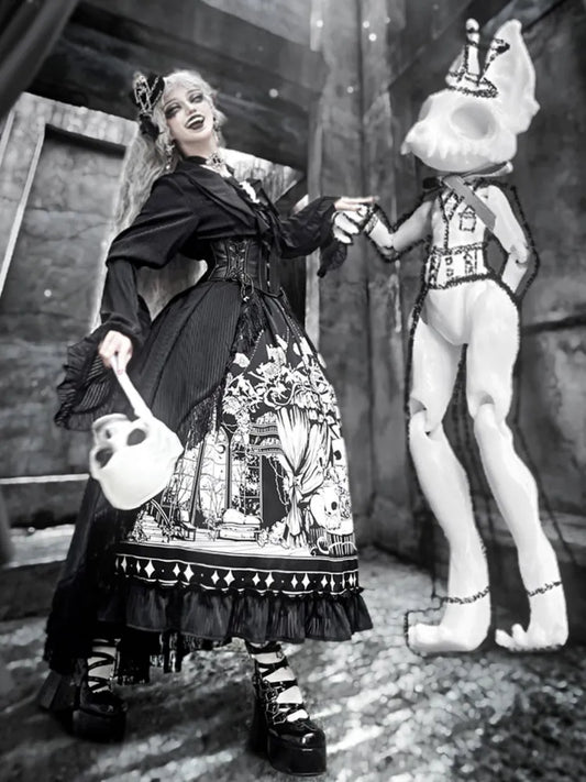 Black Gothic Print Dark Skeleton Lolita Available Cat Plus Skirt Sizes