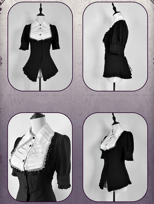 Ruffle Shirt Sleeves Neckline Gothic Kuro Lolita Black Short