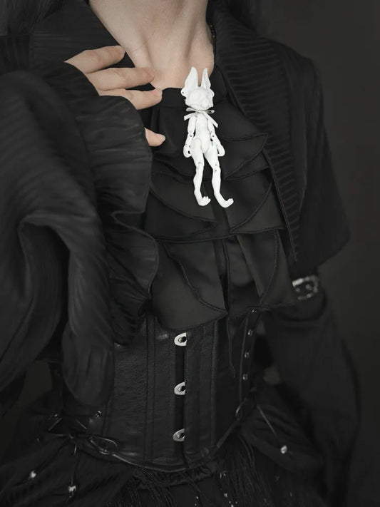 Lolita Design Ruffle Ouji Cape Cascading Collar Gothic Foldover Shirt Pointed Black