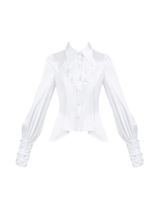 Shirt Long Foldover Gothic Cascading Sleeves Pointed Ruffles Lolita White Collar