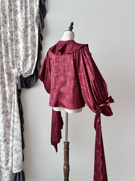 Shirt Structured Red Gothic Sleeves Long Lolita V-neck Ruffles