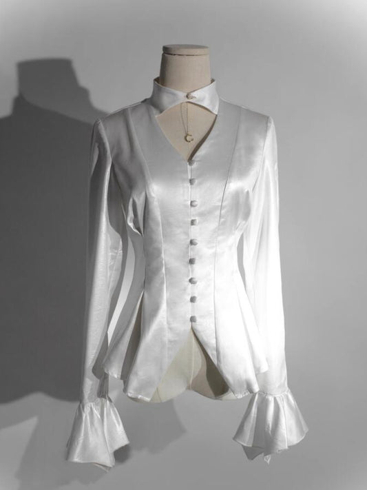 Flounce Bell Sleeves White Blouse Trim Gothic