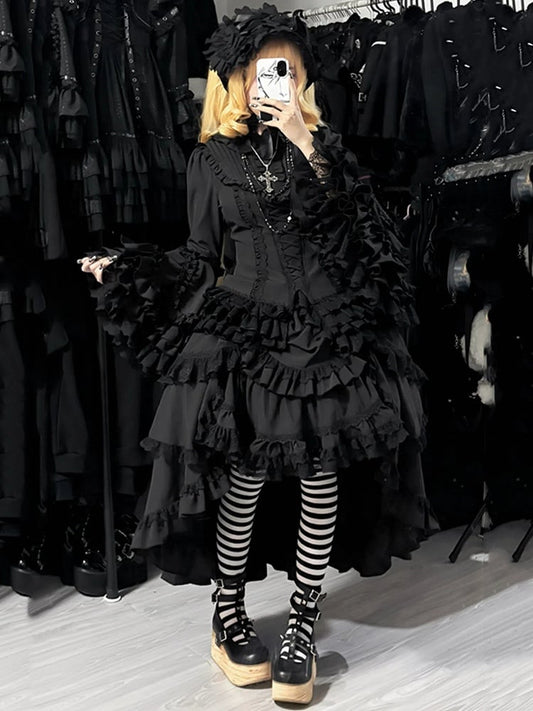 High-low High Cascading Skirt Ruffle Lolita Gothic Waist Black