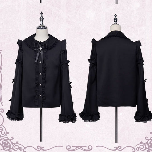 Lolita Shirt Pointed Sleeves Flat Black Collar Gothic Long