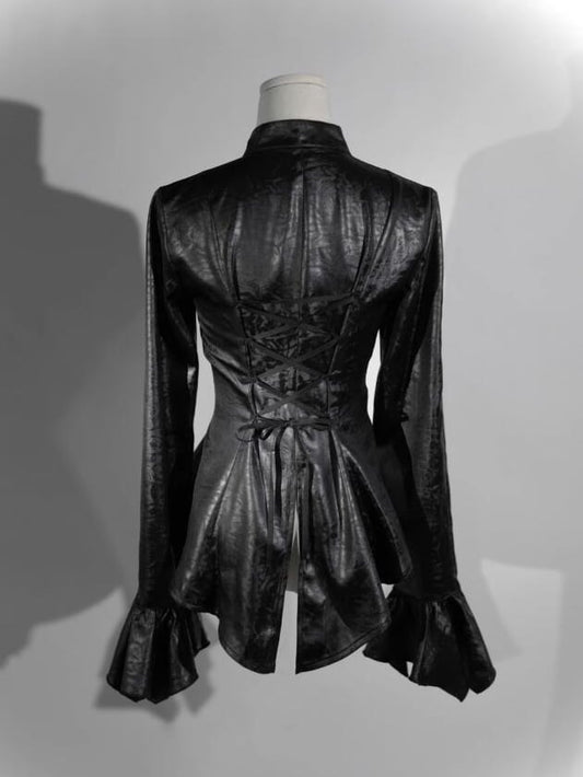 Tail Long Shirt Pointed Collar Gothic Foldover Ouji Sleeves Lolita Black
